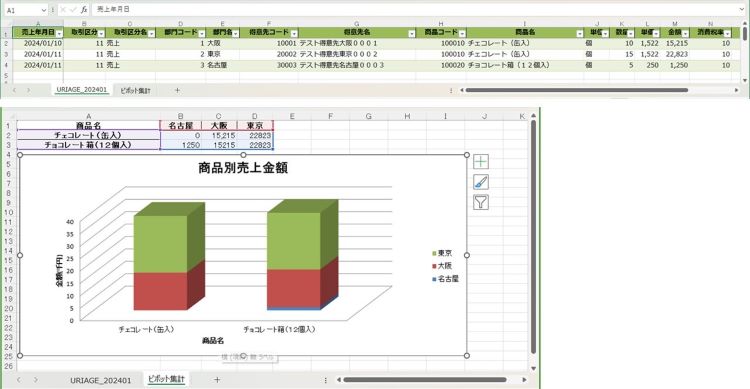 また、ピボット集計とグラフはテスト実装(動くかの確認)ですので、本番で使用すると機能不足があるかもしれません。この点は今後の検討内容です。