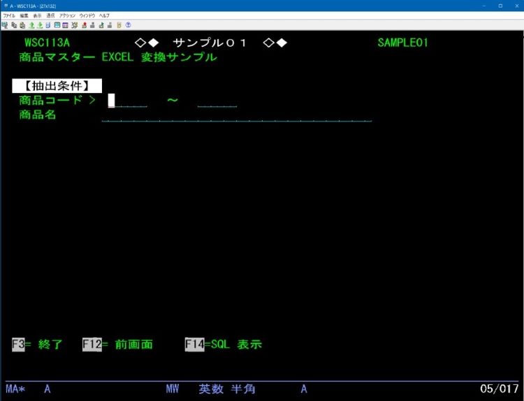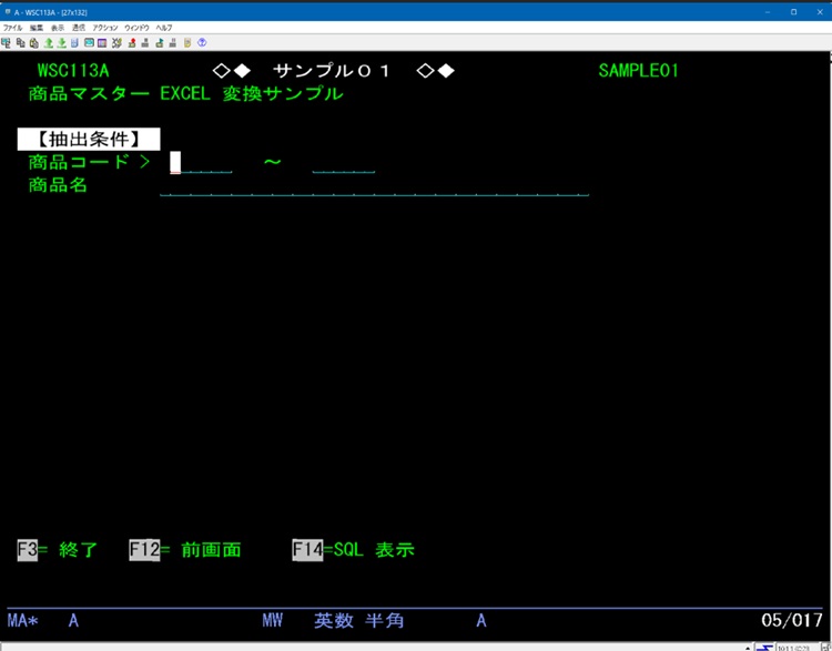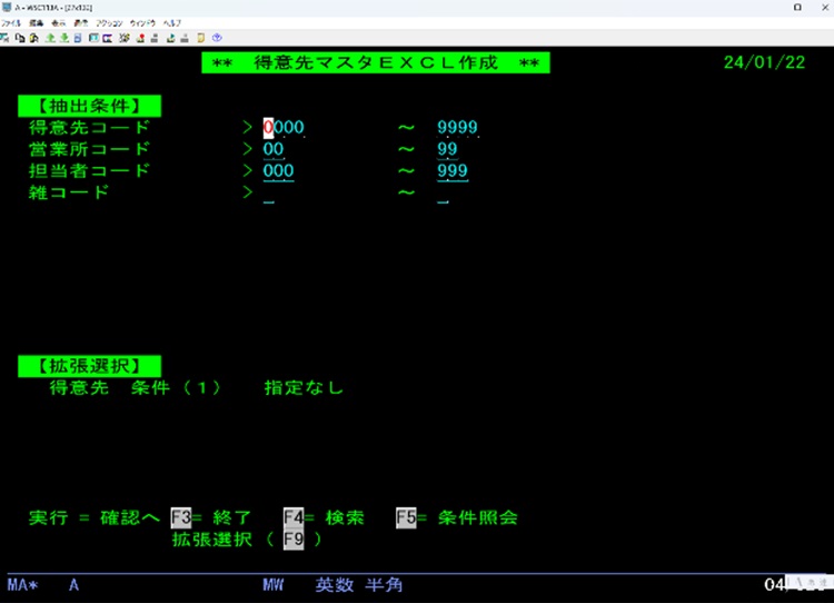 - 5250画面にて選択条件入力