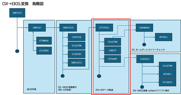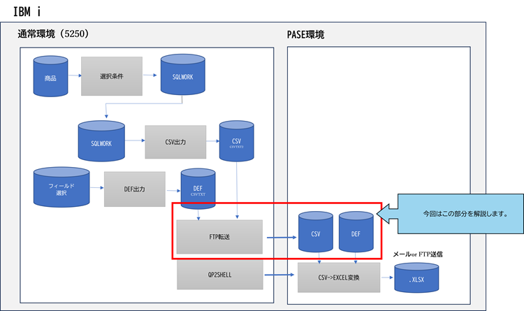 EXCELファイルへの変換はPASE環境のPythonで行います。そのため、データをPASE環境(IFS)に転送する必要があります。