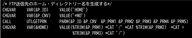 実際のFTOは、STRTCPFTPで転送しています。STRTCPFTP実行の終了後、出力されたOUTPUTファイルを読込み、成功または失敗の判定をしています。