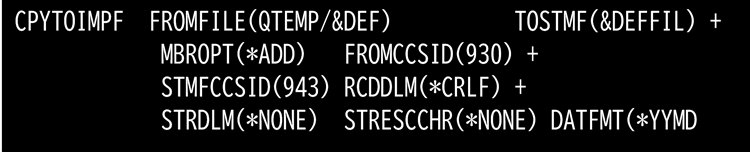 ※2:CSVTXT, CSVTXT2,CSVTXT3のレコード長が長いため)CPYTOIMPFコマンドはこのような使用方法を想定していないようです。