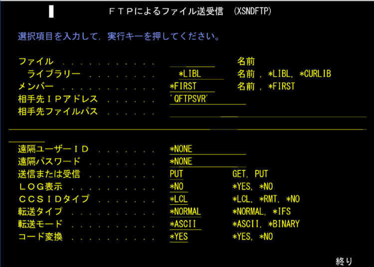 いずれも、半角EBCDIC->JIS, IBM漢字->シフトJIS漢字 (0E及び0Fは除去されます)の変換を自動で行ってくれます。 (※当初は、PASE環境でデータ転送後にiconvコマンドでコード変換が必要かなと考えましたが、実際には不要でした。)