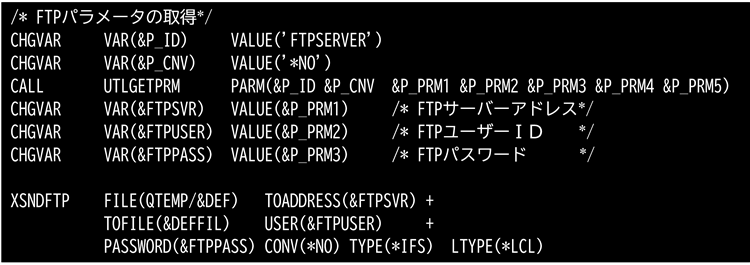 ILECLPでXSNDFTPを実行している箇所。FTPで必要なパラメータはパラメータ取得で入手しています。