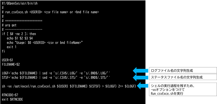 サンプルではqp2shellを使用しています。Qp2shellでは、各パラメータの文字列はヌル文字(0x00)で終了する必要があります。