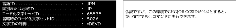 (※ CHGJOB CCSID(5026) を実行しCCSIDを設定すると問題なく動作します。省略時のCCSID=5026は有効になっていないようです。)