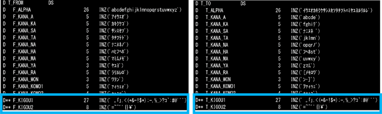 このプログラムは、5026<->5035間の英小文字とカタカナ(小文字含む)を変換するものです。