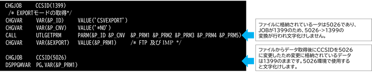 尚、パラメータファイルはCCSID=5026のデータですが、JOBがCCSID=1399ですので、パラメータ取得時に英小文字は1399に自動変換されます。