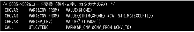 コード変換プログラムは上記の様に、ファイルからデータ取得後にCCSIDを変更した場合などに使用します。また、5026環境で英語小文字を使用するプログラム(フリーソフトのメール送信ソフトでパスワードに英小文字を使用する場合など)でも使用できます。