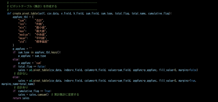 タイトルの通りピボット集計・グラフ描画を行うクラスです。VB.NETでは実装を諦めましたが、Pythonでは簡単に実現できました。