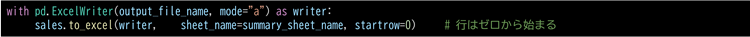 返されたピボットオブジェクト(sales)は、下記のように新しいシートとして既存のワークブックに追記します。