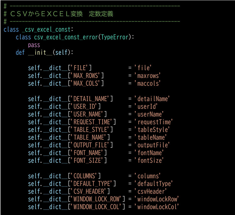 CSV->Excel変換のPythonスクリプトで使用する定数を定義したものです。