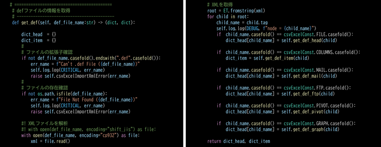 XMLファイルをインポートしてパースするコードは長くなります。このため、メインプログラムから分離しています。(※DEBUGも分けたほうが便利だったため)