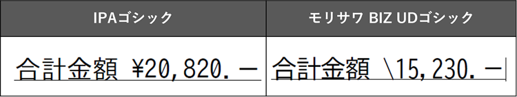 (※注意事項)使用するフォントにより、¥が\に変わるケースがあります。