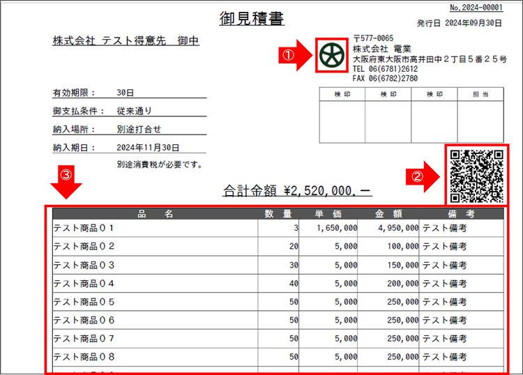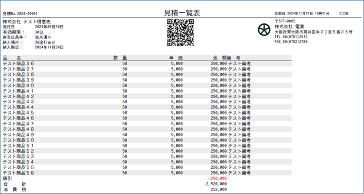 ※Apache-FOPにはバーコード化(JAN,CODE39,NW7など)やQRコード化の機能はありませんが、Pythonを組み合わせる事で可能となります。 - QRコード(Pythonで見積№をQRコード化しています。Pythonで出力されたSVGを取り込む事でPDFに表示しています。)