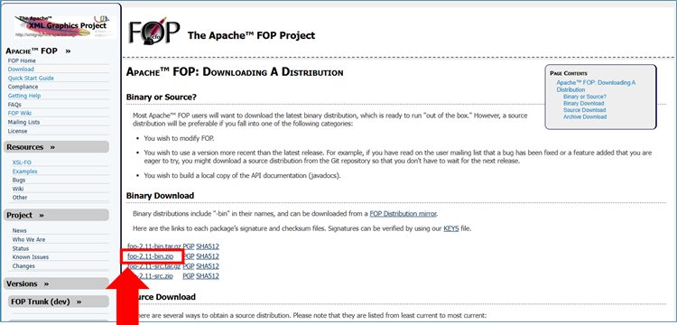 2. Apache-FOPのダウンロード