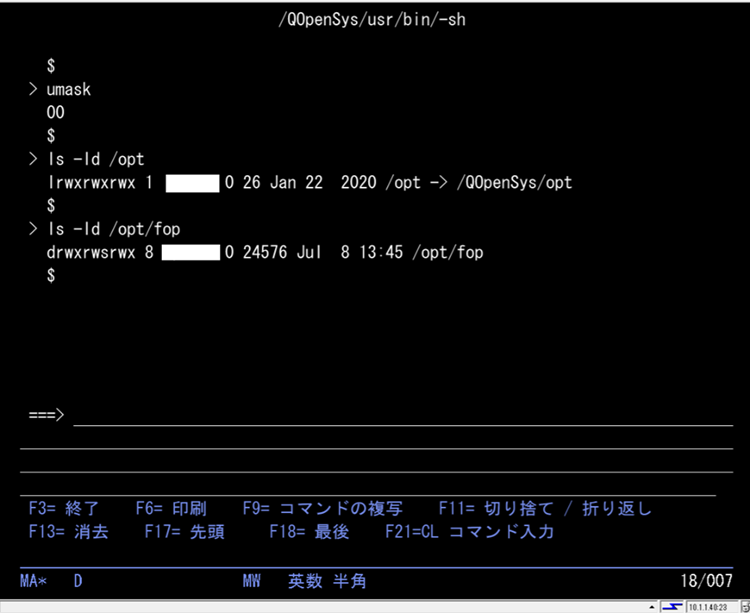 PASE環境に入ります。(qp2termコマンドの実行)