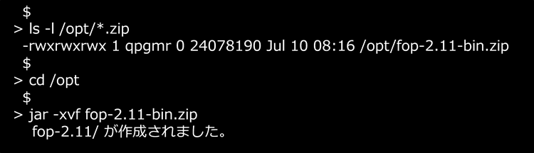 3.2.2 PASE環境にてFOP-2.11-bin.zipを解凍