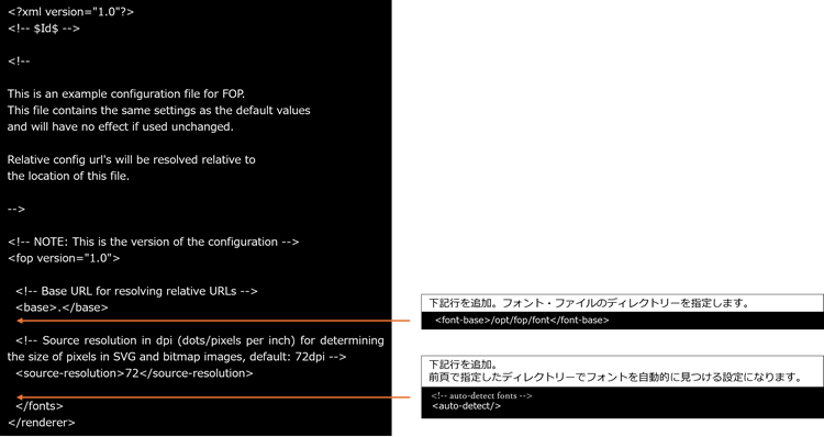 /opt/fop/conf/fop.xconfを修正します。