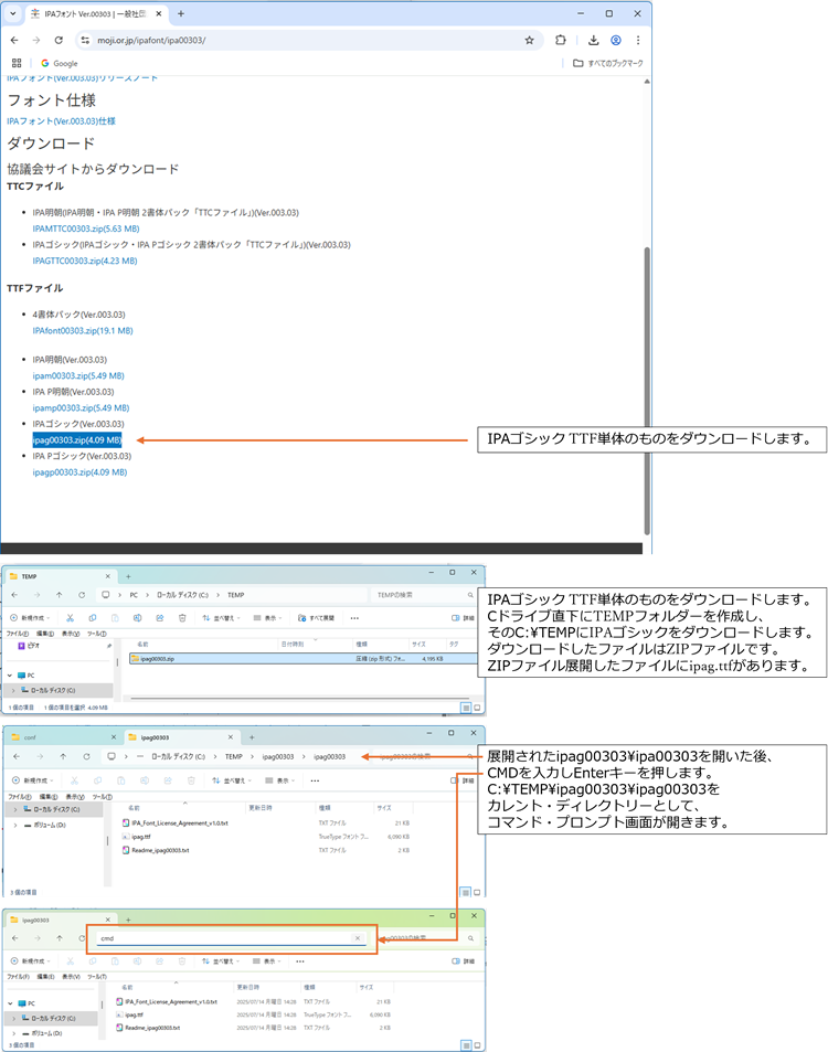 https://moji.or.jp/ipafont/ipa00303/からダウンロードします。