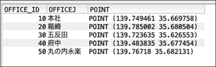 SQLを実行すると、これらの事業所データがテーブルに格納されます。