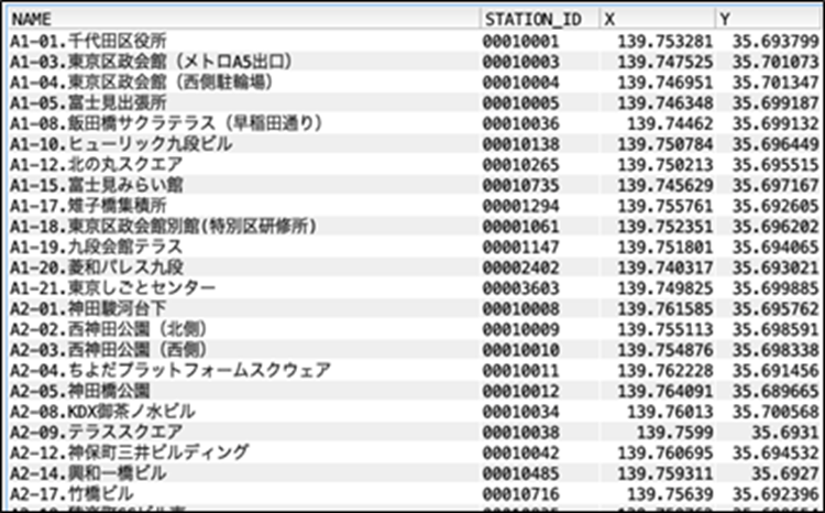 次に、シェアサイクルポートのデータに位置情報を付与します。