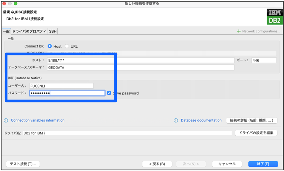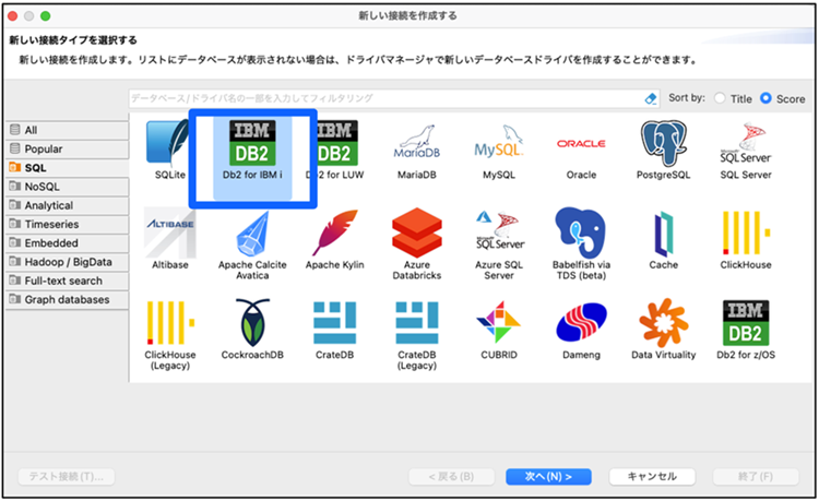DBeaver から IBM i に接続する際は、データベースの種類として 「Db2 for IBM i」 を選択します。