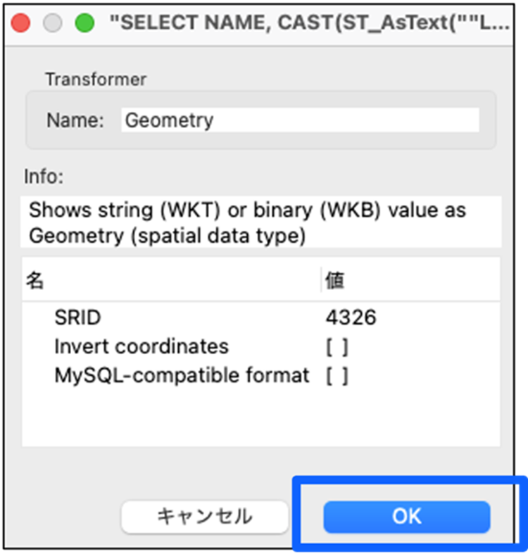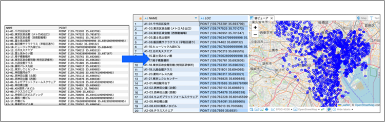 これにより、もともとは単なる数値データだった X と Y が、地理空間データとして正しく登録されていることが分かります。