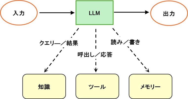 図1. LLMは、知識、ツール、メモリーを用いてアクションを起こします。